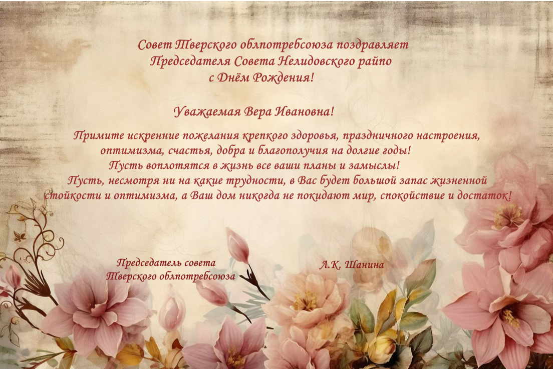 Совет Тверского облпотребсоюза поздравляет Председателя Совета Нелидовского райпо с Днём Рождения!