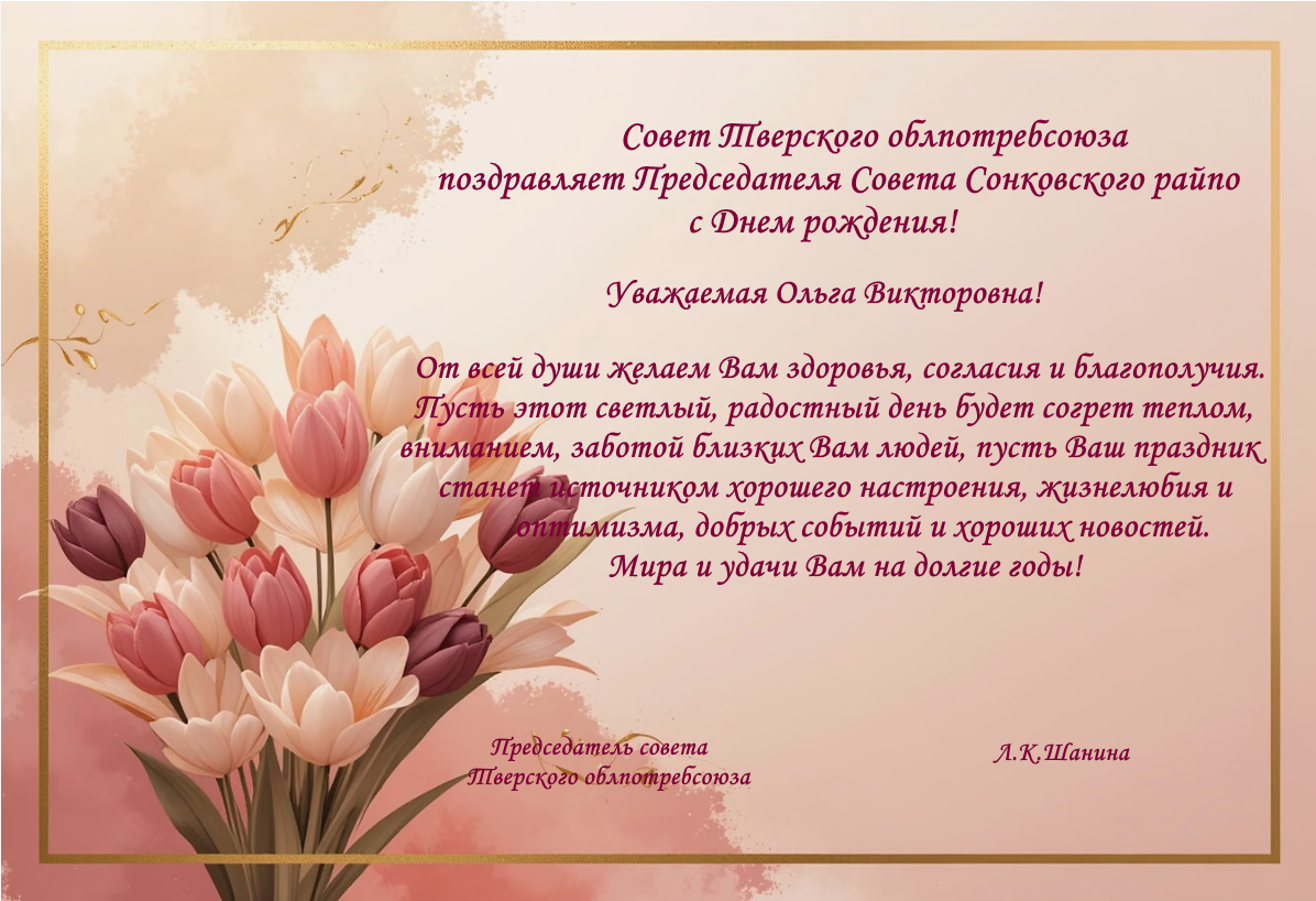 Совет Тверского облпотребсоюза поздравляет Председателя Совета Сонковского райпо с Днем рождения!