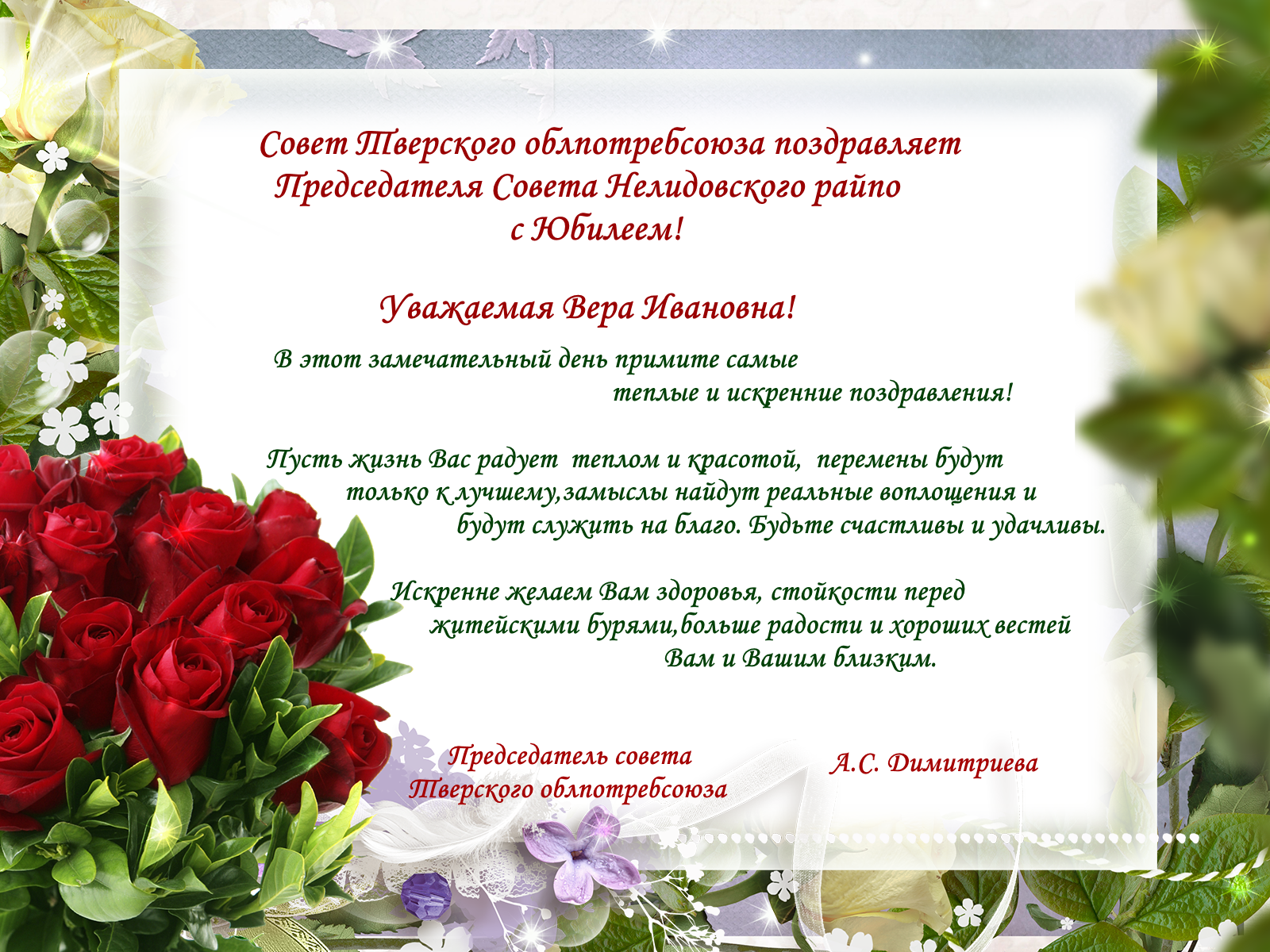 Совет Тверского облпотребсоюза поздравляет Председателя Совета Нелидовского райпо с Юбилеем!