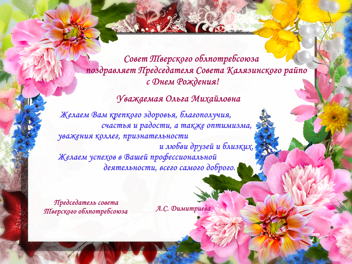 Совет Тверского облпотребсоюза поздравляет Председателя Совета Калязинского райпо Днем Рождения!