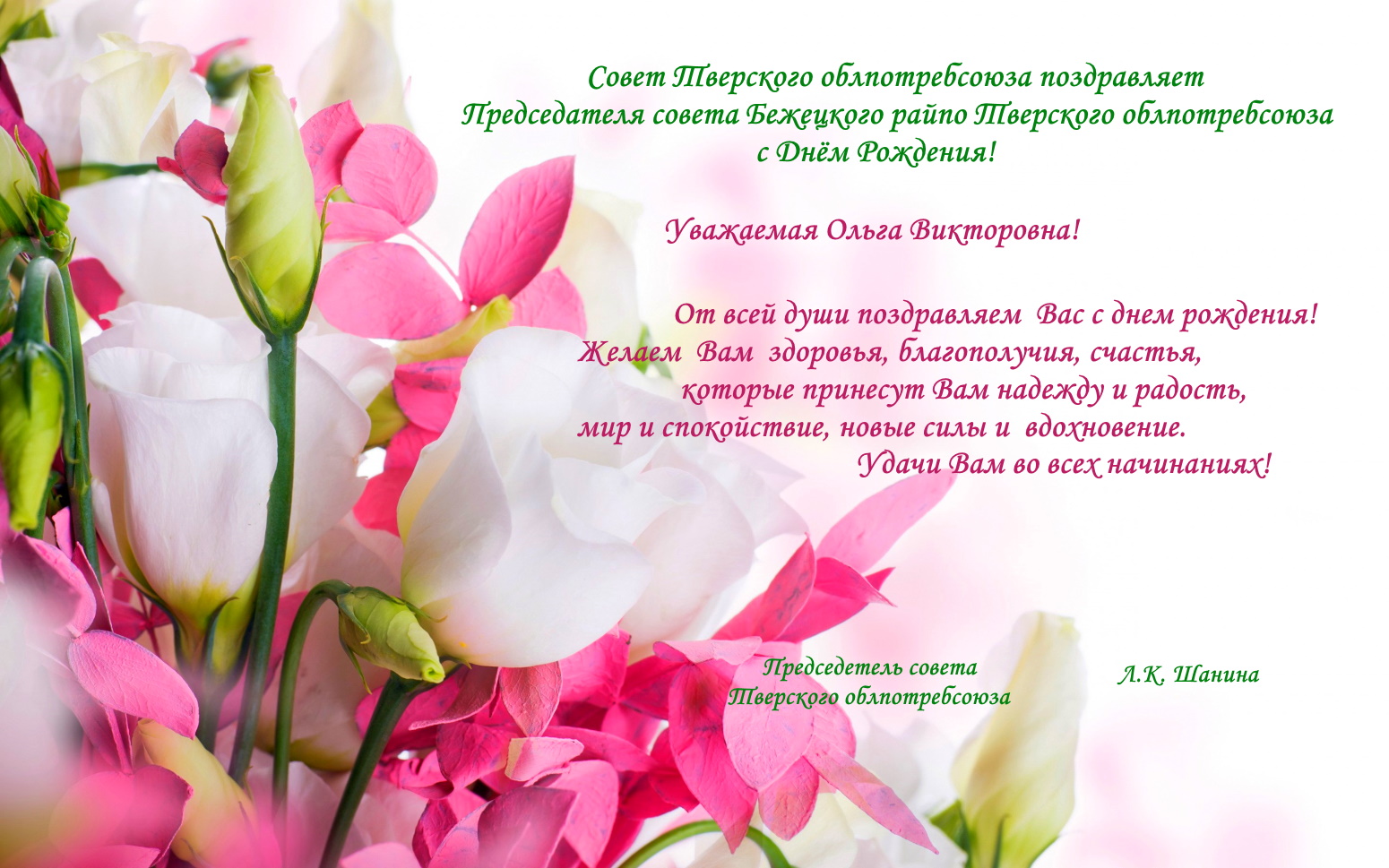 Совет Тверского облпотребсоюза поздравляет Председателя совета Бежецкого райпо Тверского облпотребсоюза с Днём Рождения!
