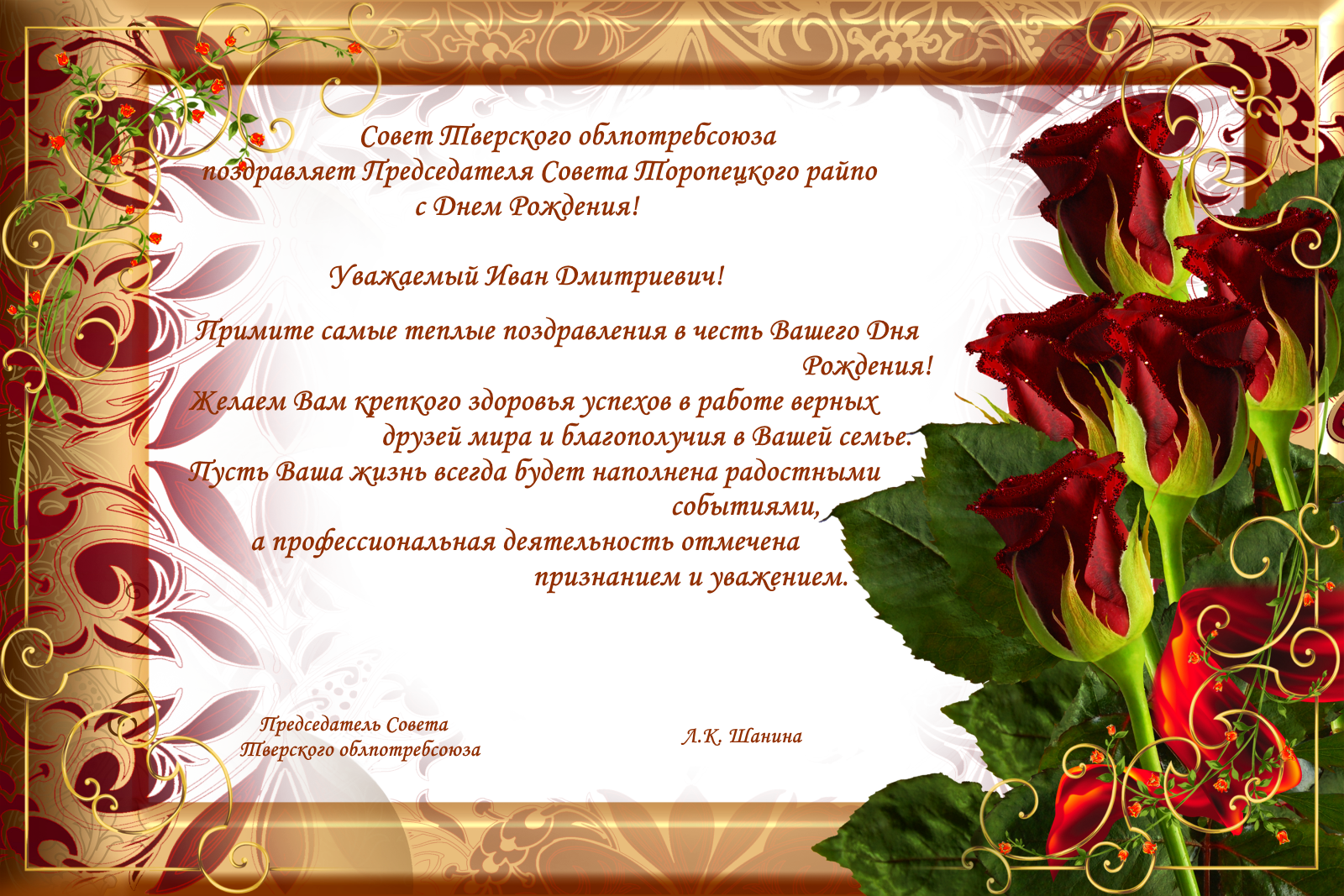 Совет Тверского облпотребсоюза поздравляет Председателя Правления ПО «Тверькооптранс» с Днем Рождения!