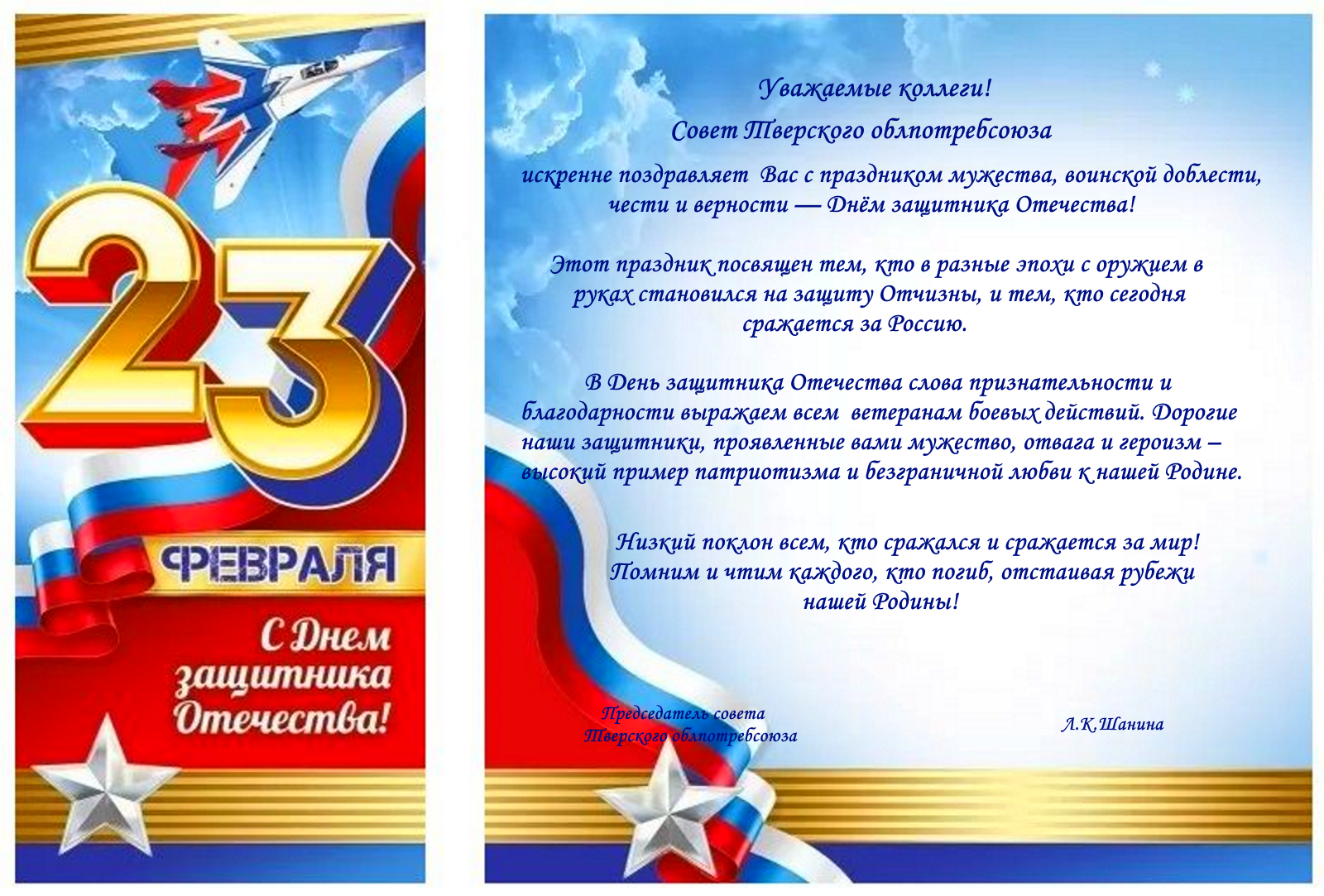 СОВЕТ ТВЕРСКОГО ОБЛПОТРЕБСОЮЗА ПОЗДРАВЛЯЕТ ВАС С ДНЕМ ЗАЩИТНИКА ОТЕЧЕСТВА!